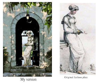 I'm currently working on a post showing bonnets etc. One of the originals is in really poor condition and taking some time to clean up without destroying details. The caps are very interesting -more detailed and elaborate than I had imagined when reading Heyer or other Romance authors. I enjoy doing this, it is a great stress-reliever, and I get a lot of practice with Photoshop. Just got a new version (my previous one was 8 years old! Practically from the Stone Age!) and I'm playing with it. Its a "student" version from England, so a bit different from American versions, I think. Anyway, its fun. I can always use Photoshop Elements if things get too complicated for me! I may post a few photos of "Georgian" and "Regency" jewelery: NOT owned by myself, of course.